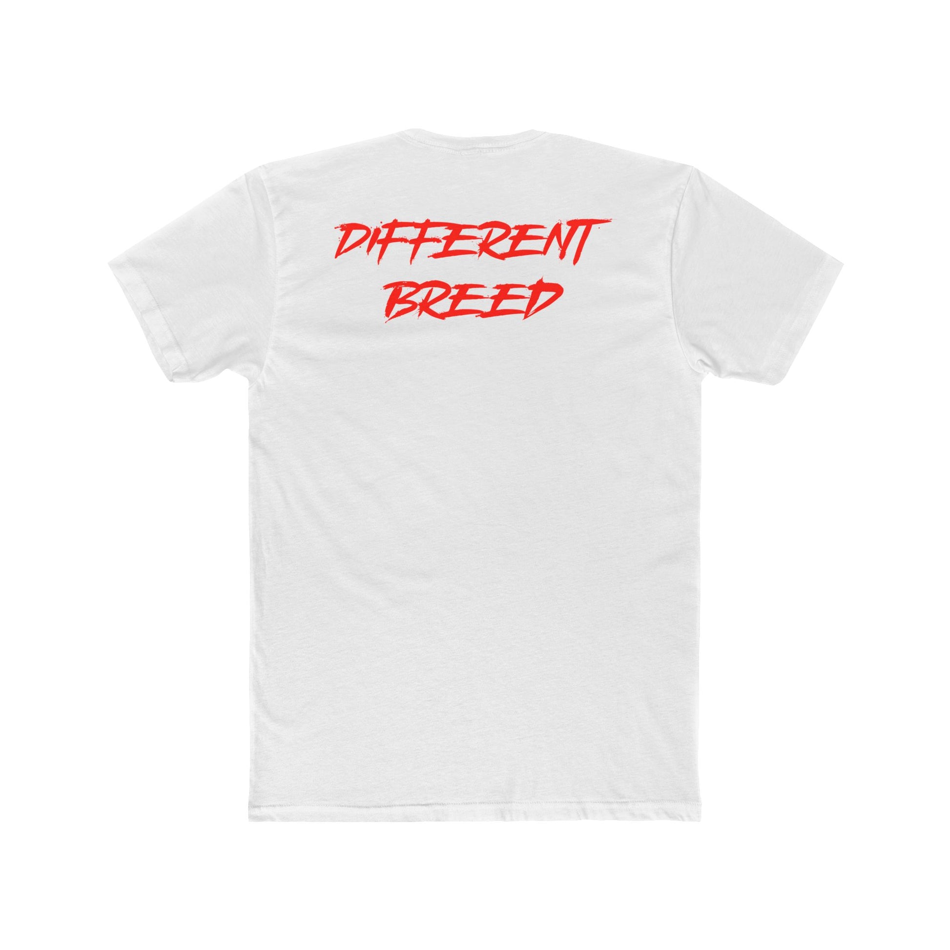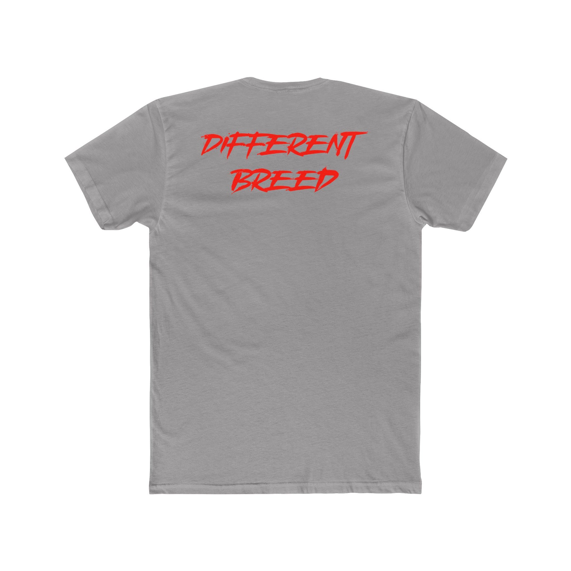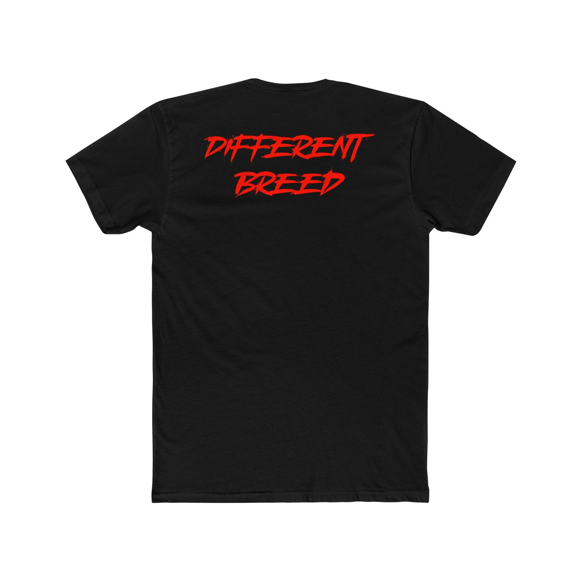 Bold back print: "Different Breed" in eye-catching red