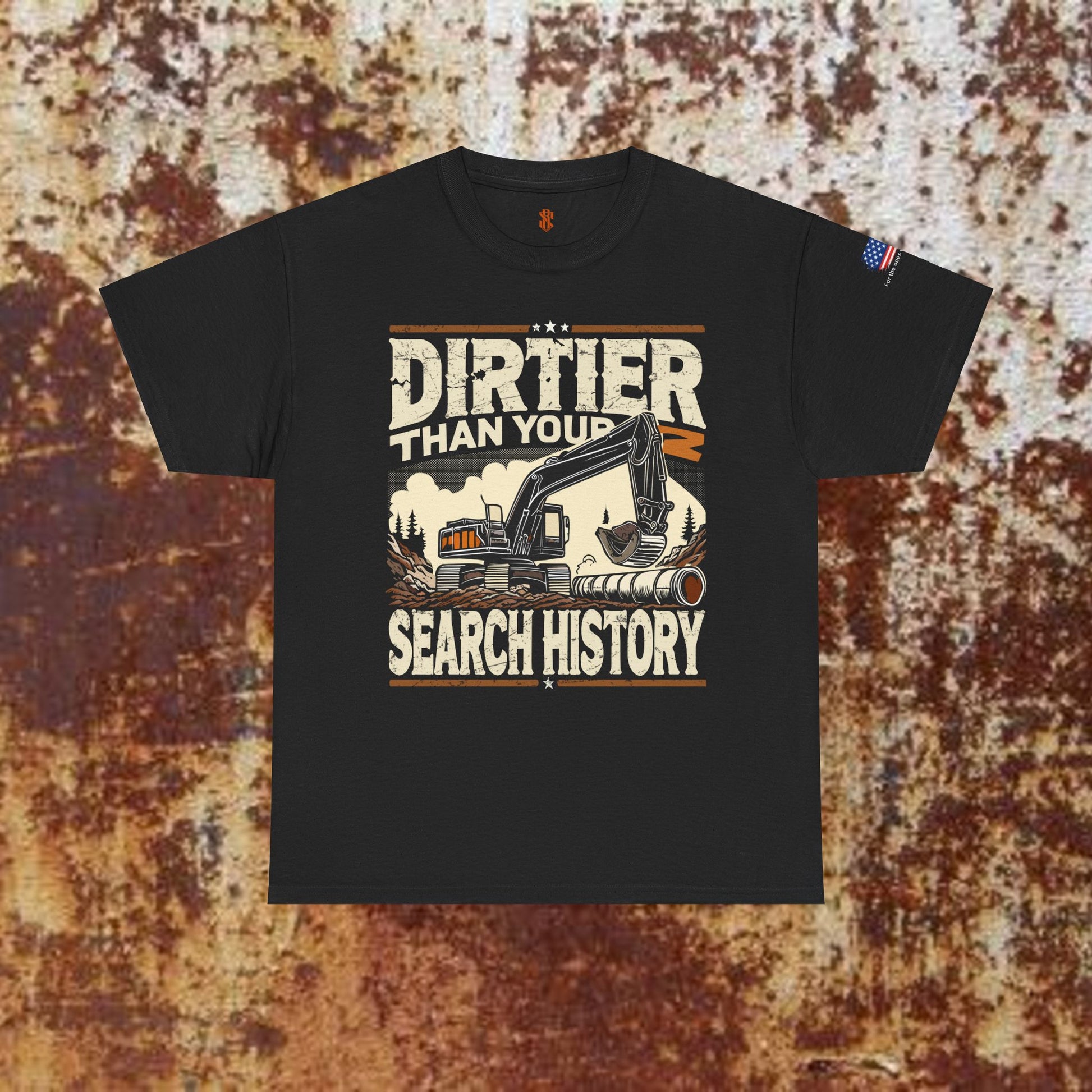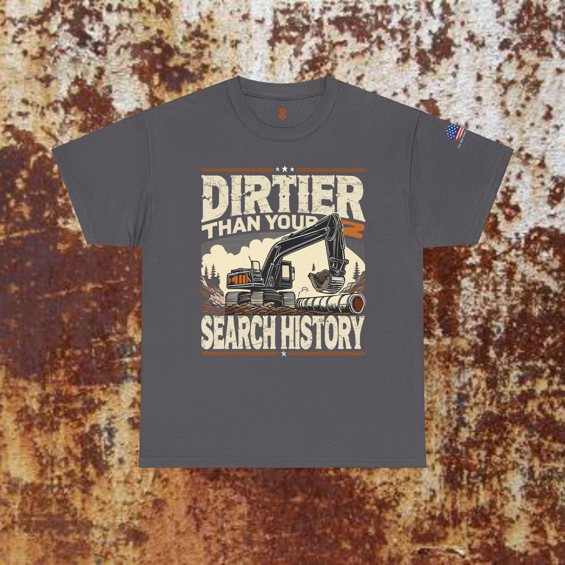 Bold Back Design: Featuring the rugged “Dirtier Than Your Search History” graphic, complete with an excavator and distressed details for a vintage industrial vibe.