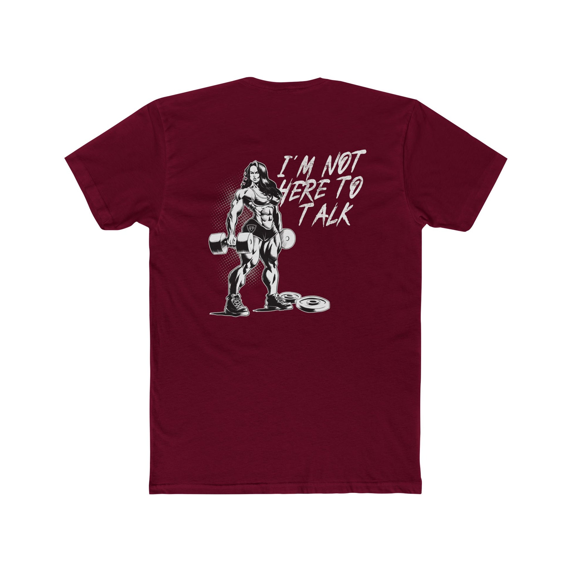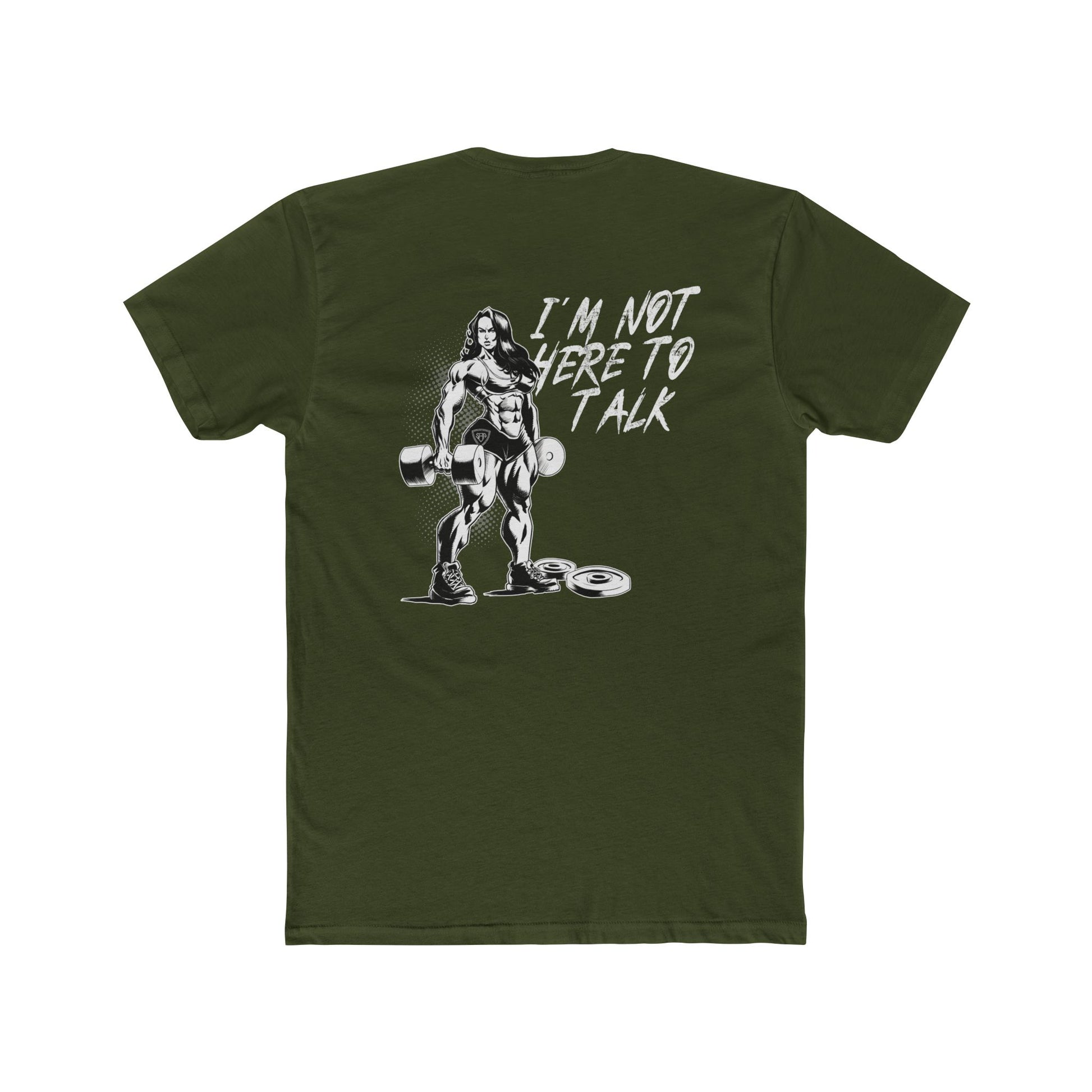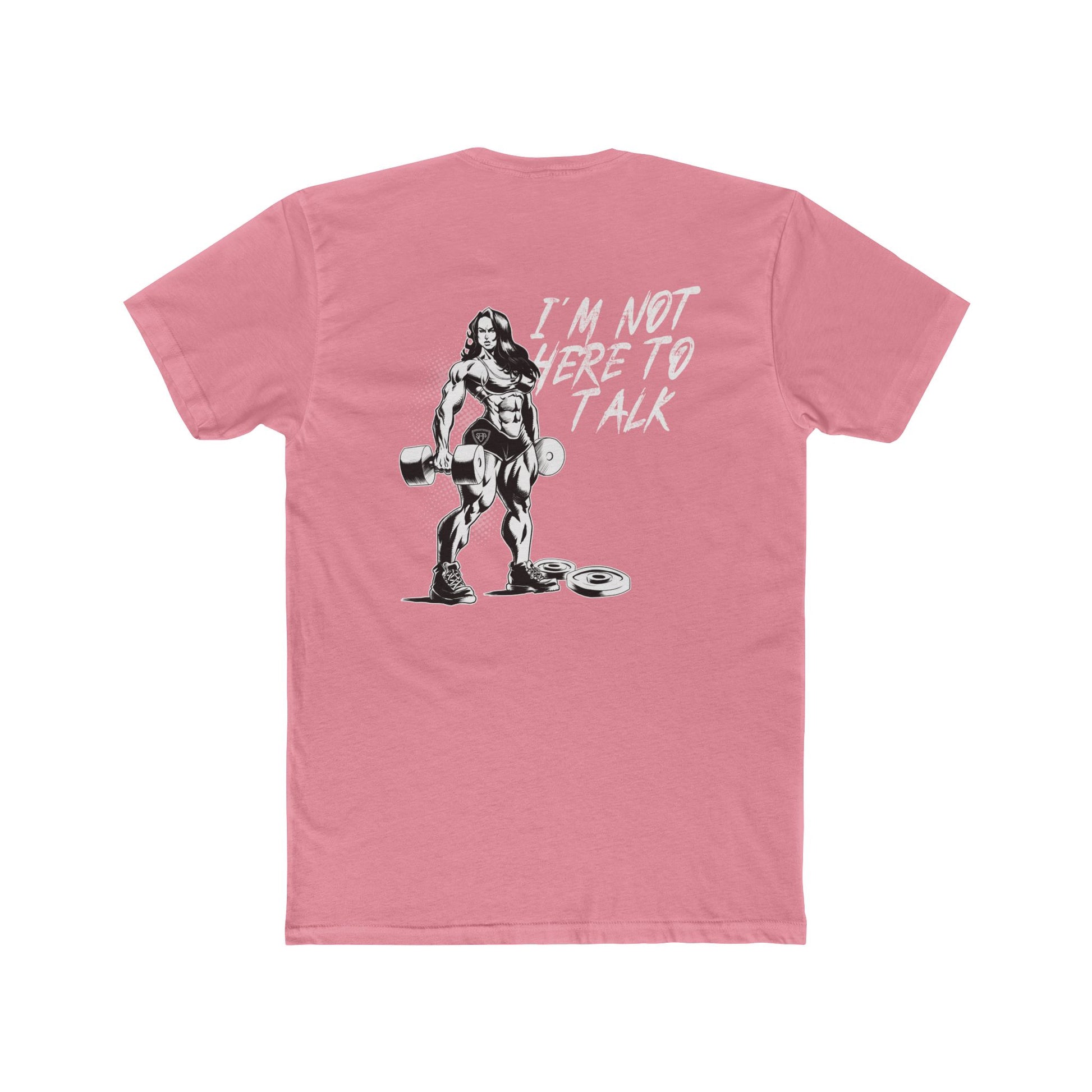 Make a statement with our Not Here to Talk tee for women! Available as a regular tee in sizes small to 5XL (pump cover coming soon).